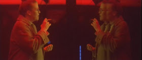 Allan: What films were you conscious of as visual inspirations? Based more on text than images, Cronenberg and Burroughs came to mind, but visually, I thought of THX 1138, Dark Star, 2001... even Begotten, during the "trip" scene, and maybe (just slightly) some Stuart Gordon (From Beyond, say). What else informed the look of the film? Did you go out of your way to duplicate certain effects? (There are moments that consciously seem to evoke THX 1138, for instance). How much of this was you, and how much of it was Panos...?