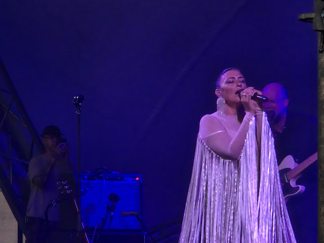 Eventually I got back to our seats in time for Elisapie, bringing Erika a tiny snack (she's on a very restricted diet but she wanted a bit of hummus). I had seen the Elisapie soundcheck while watching the "tarpestry" get assembled, and have to say I was not prepared for how marvelous the music would be, how compelling she would be. I feel like I *have* to interview her, because I have questions (and an album she might maybe sign?).